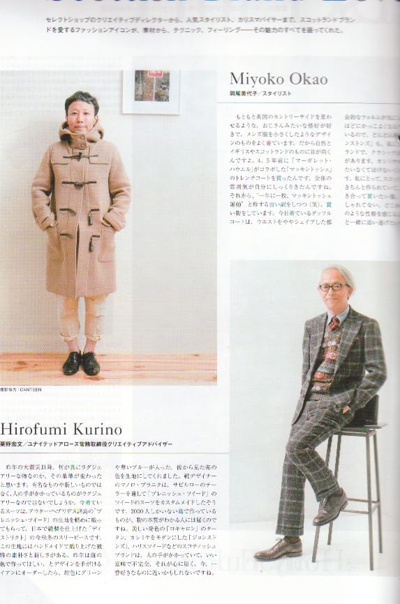 There was a piece on Breanish Tweed in GQ Japan in 2012 (and you think you're behind with your blog writing), where Mr Kurino talked about his love of Scottish textiles. Here is the translation (images of the article below).
