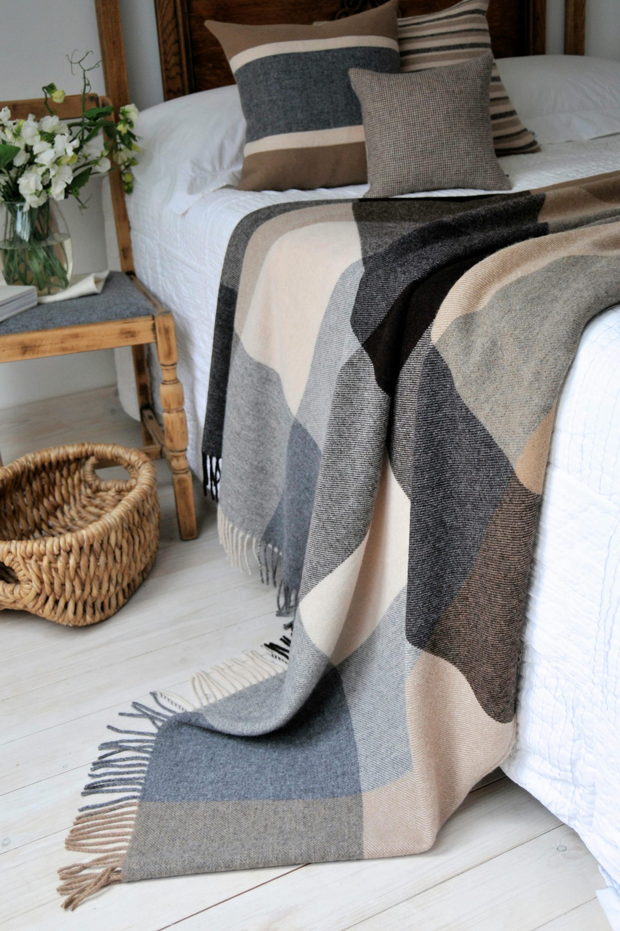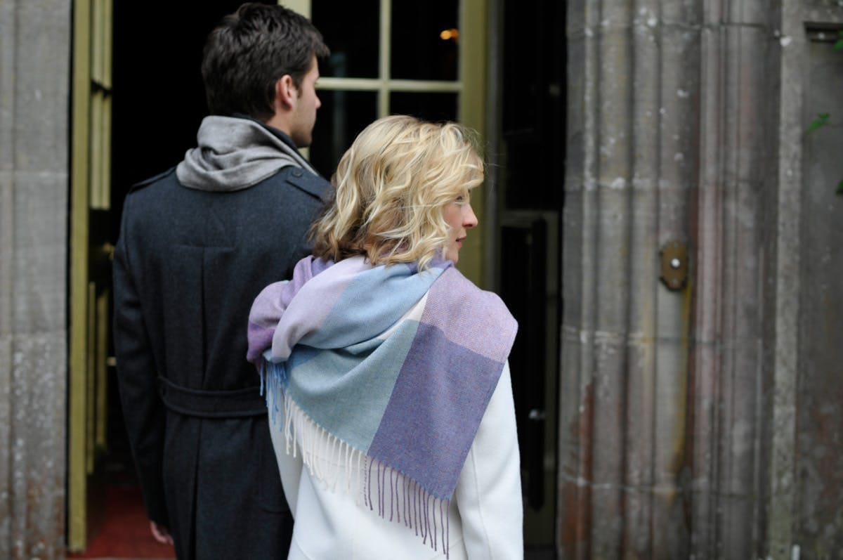 As well as cloth for tailoring, we also weave scarves, throws and shawls in different qualities.